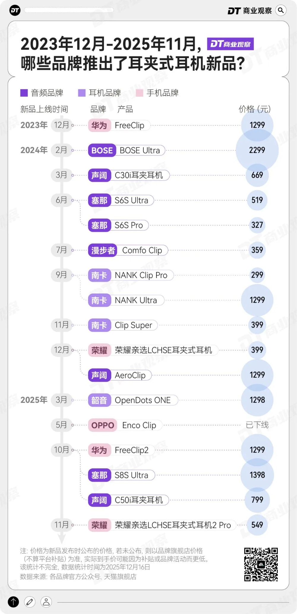 华为FreeClip的成功,让耳夹式耳机的市场潜力彻底爆发,各领域品牌纷纷入场,除了卷技术、重量、续航、颜值等等,价格段也变得更丰富了,这加速了耳夹式耳机从小众尝鲜走向大众日常。