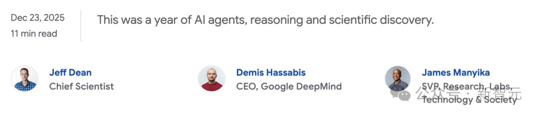 就在刚刚,谷歌 AI 掌门人们:首席科学家 Jeff Dean、DeepMind CEO Demis Hassabis 以及负责技术与社会的 SVP James Manyika 三位重量级人物联名发布了谷歌 2025 年度总结。