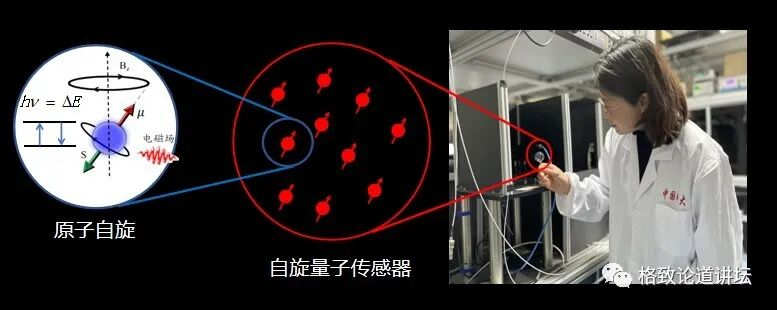 大家可能对这个数据没有直观的感受,我做一个简单的比方。这个磁场的大小,就相当于我们把一块小磁片贴在近万米高空飞行的飞机上,然后在地面上我们的自旋磁力计也能够感受到这个小磁片产生的磁场。当然我们还有进步的空间,我们研究组还在不断地提升探测能力。
