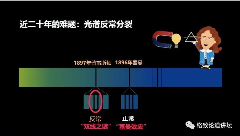 第二年,普雷斯顿在塞曼的实验基础之上,对锌原子和镉原子做了同样的实验,但是观测到的却是不同的分裂情形。即分裂的谱线不再是3条,而是会有更复杂的分裂。这个反常的分裂把当时的物理界弄得很困惑。
