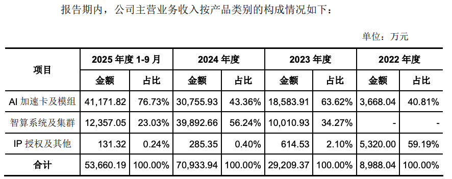 燧原科技的招股书披露了其近年的经营状况,2022年至2024年营收分别为9010.38万元、3.01亿元和7.22亿元,营收复合增长率高达183.15%。2025年前三季度营收为5.4亿元。