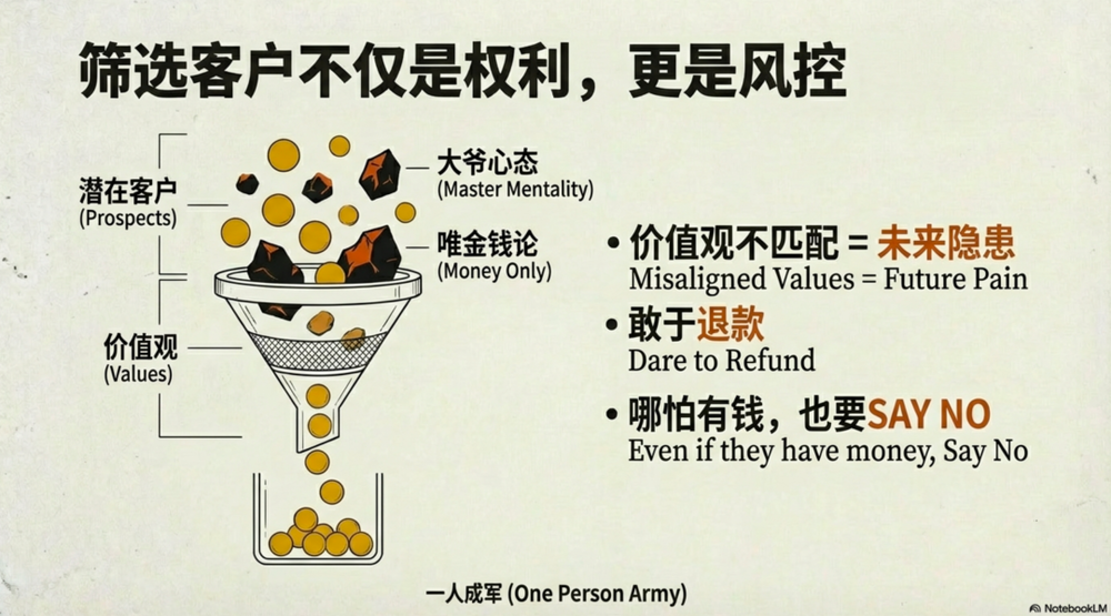 筛选客户,是为了规避未来的风险。我们要找的是那些认可我们专业、尊重我们流程、价值观同频的同路人。
