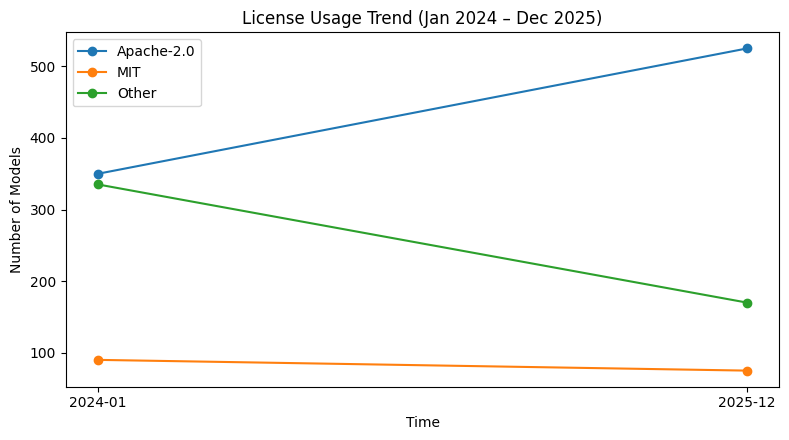 在R1之后,Apache 2.0几乎成为中国社区开源模型的默认许可证选择。更宽松的许可证降低了模型在生产环境中使用、修改和部署的摩擦,使企业更容易将开源模型真正引入实际系统。对Apache 2.0和MIT等标准许可证的熟悉程度同样降低了使用门槛;相比之下,定制化和约束性更强的许可证因为不被熟知、理解成本高,增加了新的法律风险,在实际使用中显著增加了摩擦成本,从而降低了采用意愿,这也直接导致了图中所显示的整体下滑。