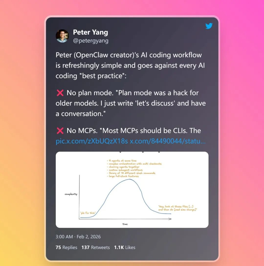 当你读完 Boris 的推文,你觉得“好复杂,我得学”;当你看完 Peter 的访谈,你觉得“我也可以试试”——这种感受的差异,本身就是答案。