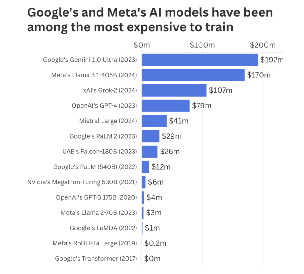 一方面,构建一个人工智能模型至少需要耗费上亿美元。