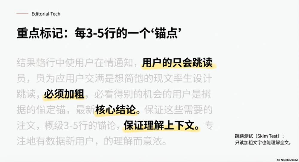 现在没人会逐字逐句读完3000字。大部分人进来的第一件事,是快速滑屏,用几秒钟扫视全文。