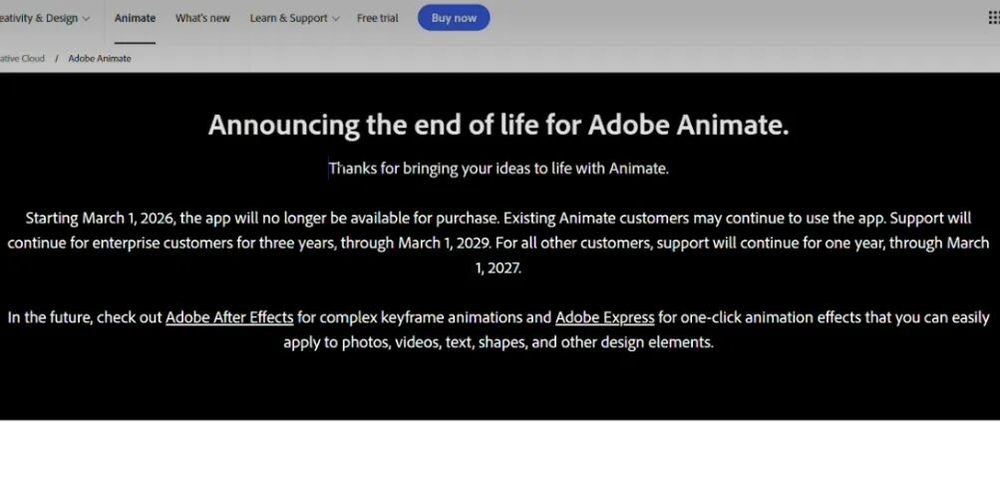 但就在2月2号晚上,Adobe突然宣布,从Flash Pro CC更名而来的Adobe Animate(简称AN)将于3月1日停止销售,现有用户在2029年3月1日之后也将无法再下载、访问文件或是寻求技术支持。这意味着动画业界届时也得放弃现有的“Flash管线”。
