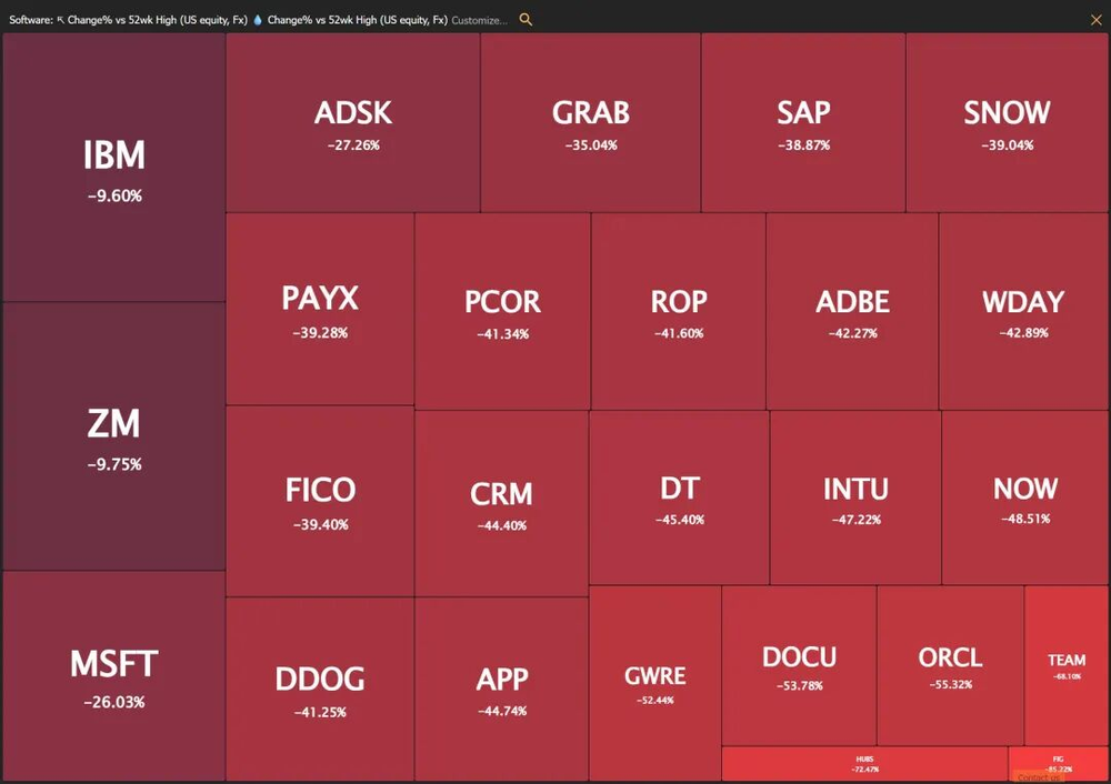 抛售潮来得异常凶猛。美股软件股2月3日率先跳水,标普北美软件指数连续三周收跌,1月累计跌幅达15%,创下2008年以来最差单月表现。紧接着,恐慌蔓延至亚太市场,多家行业龙头股价暴跌。
