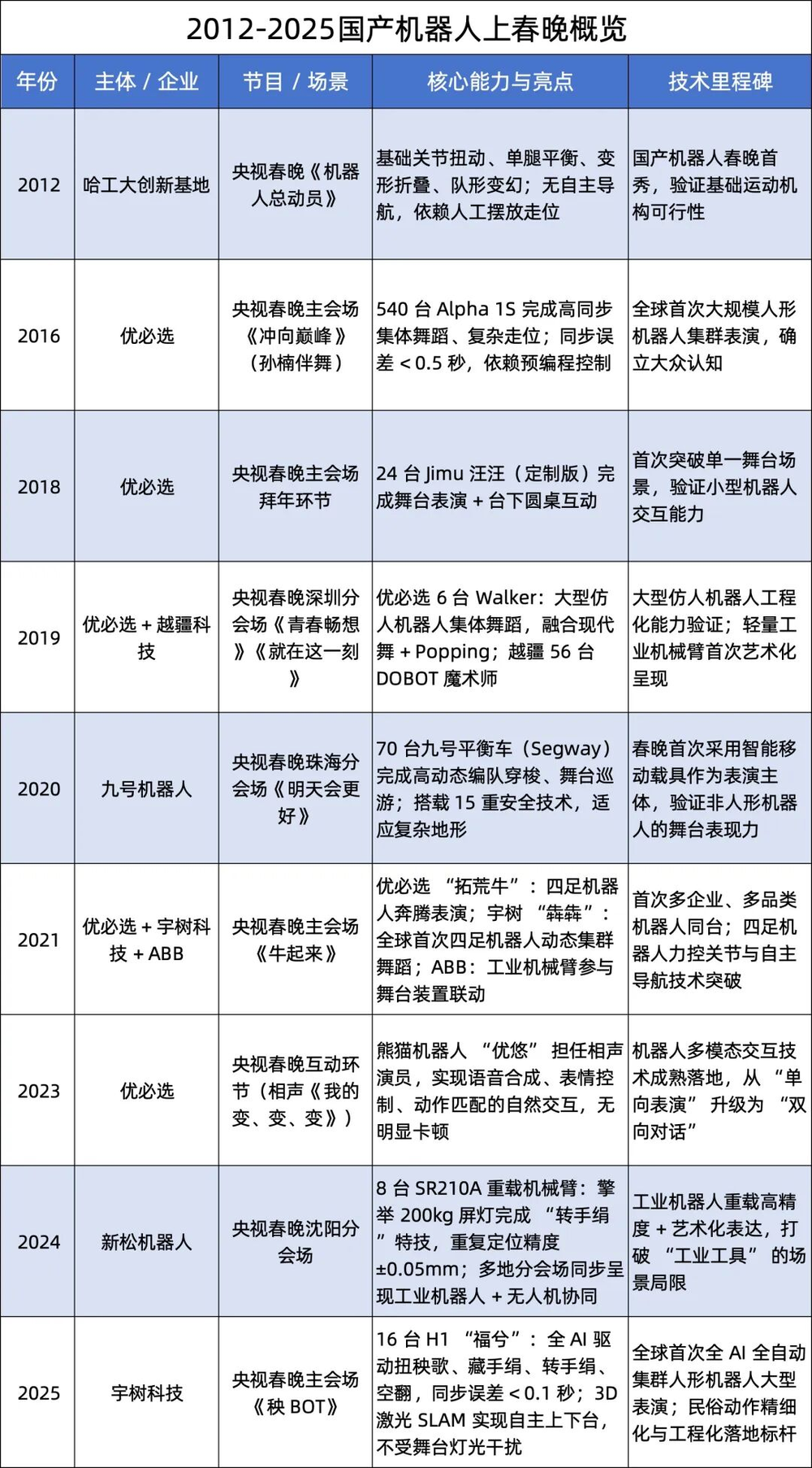 三、从企业战略看,春晚舞台的投入产出比正被重估。在确保“零失误”这一基本前提之下,登上春晚对于处于不同发展阶段的企业而言,意义也不同。站在头部头部厂商视角,凭借技术实力与稳定表现,既能强化资本信心,更能成为冲刺IPO的关键推手。