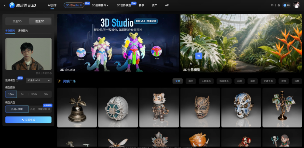 混元,图生3D,世界模型,骨骼驱动功能。