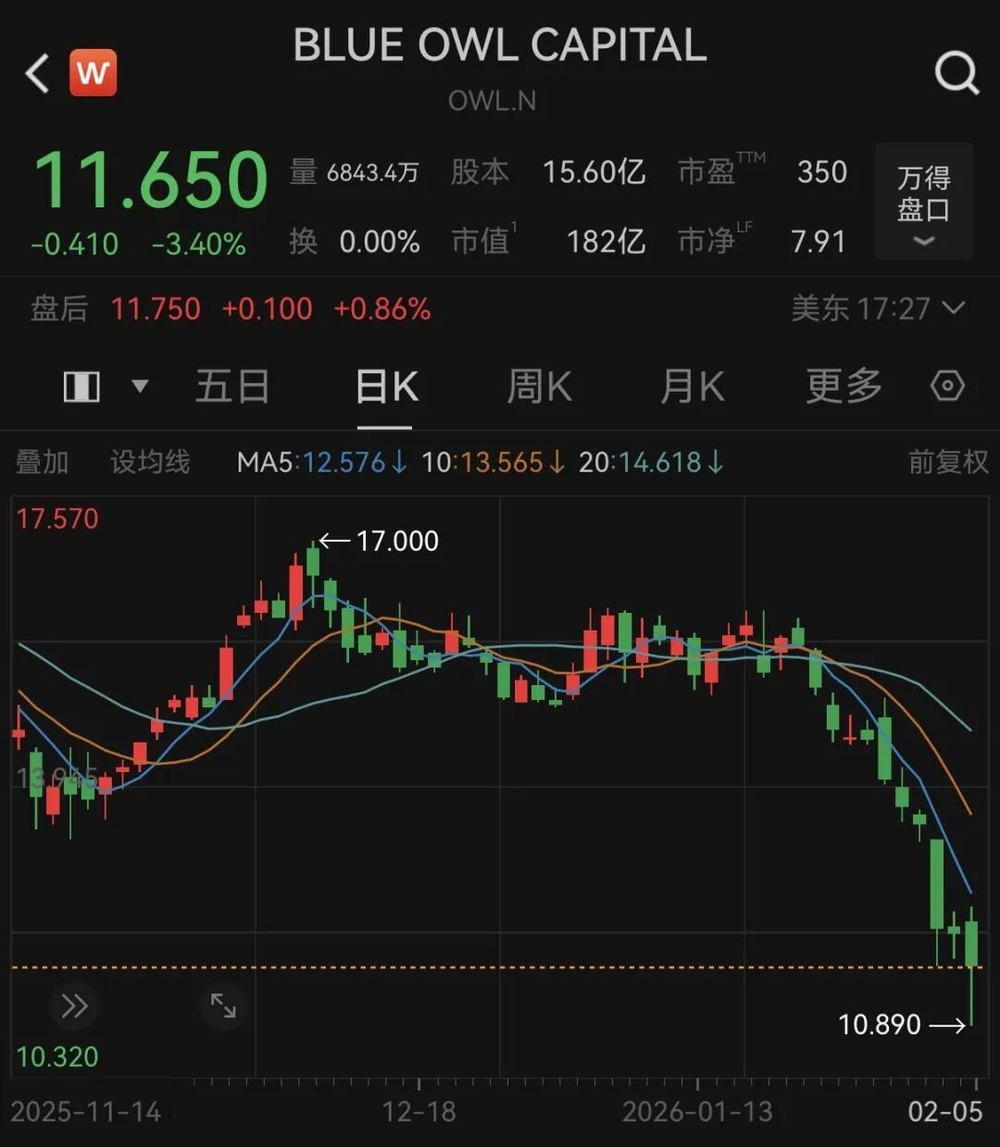 Barclays在最新研报里写到,BDC(Business Development Company,私募信贷的公开载体之一)行业去年三季度在软件领域的总敞口超过1000亿美元,也正因此,这一轮受伤的除了软件行业股价之外,就要属Blue Owl、Ares乃至Blackstone这样的私募信贷巨头了。