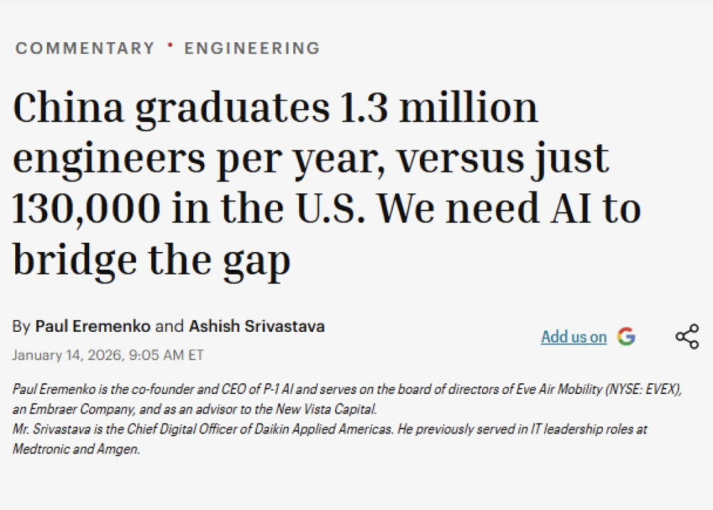 难道美国人要指望一群从未画过一颗螺丝钉、从未下过车间的年轻人,去指挥AI设计美国下一代的火箭发动机吗?