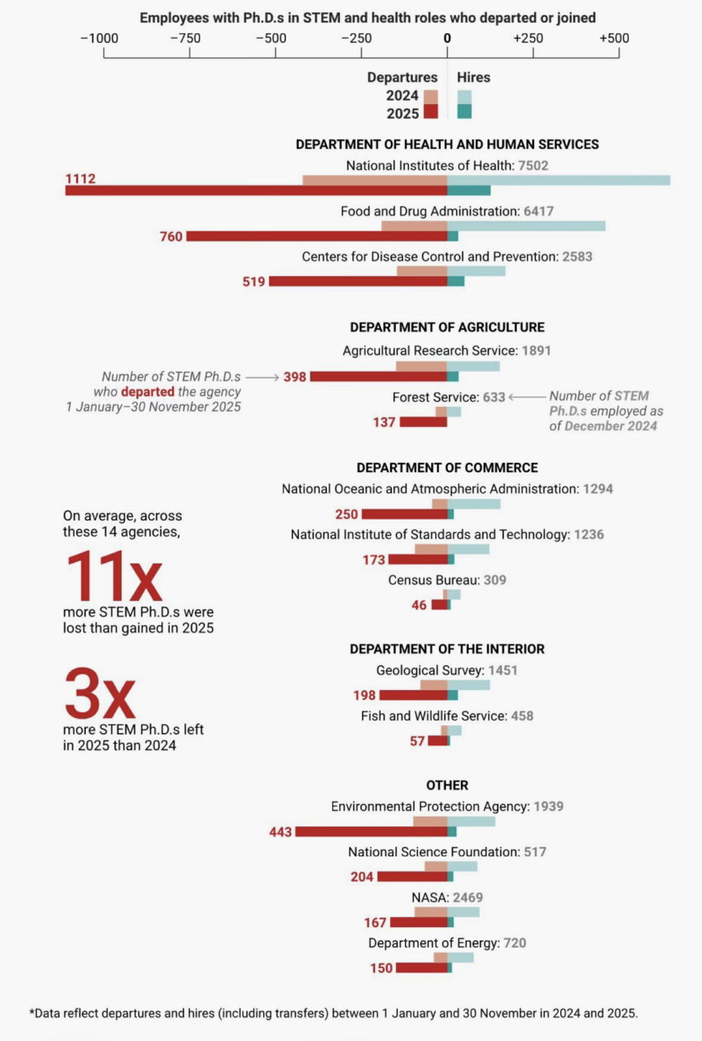 并没有。前白宫科学家Dr.Catharine Young在评论区补上了更绝望的一笔:仅仅去年一年,美国联邦政府就流失了超过10000名STEM领域的博士。